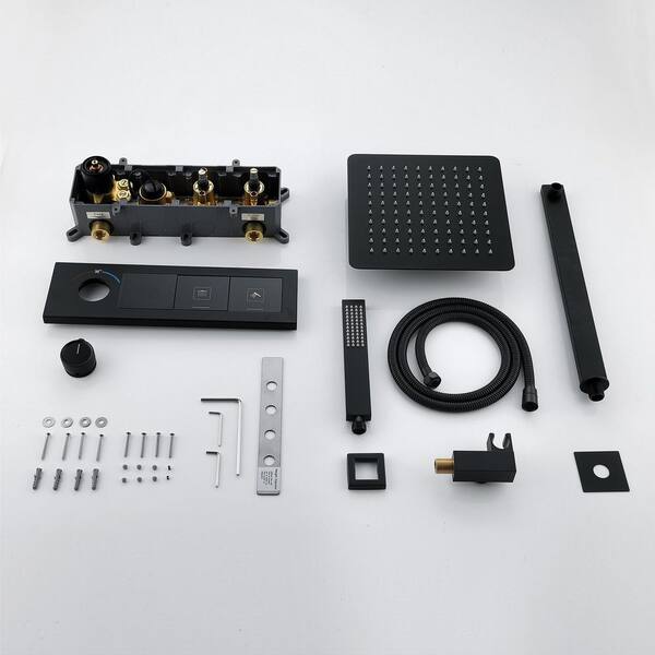 Single Handle 1-Spray 12 in. Thermostatic Shower Faucet 1.8 GPM with Anti Scald Shower System with Valve in. Matte Black