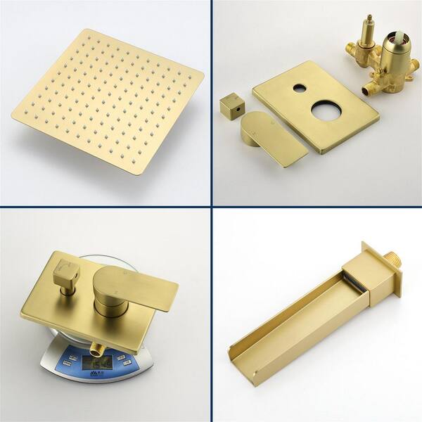 Single Handle 1-Spray Tub and Shower Faucet 1.8 GPM 10 in. Wall Mount Shower System with Valve Included in Brushed Gold