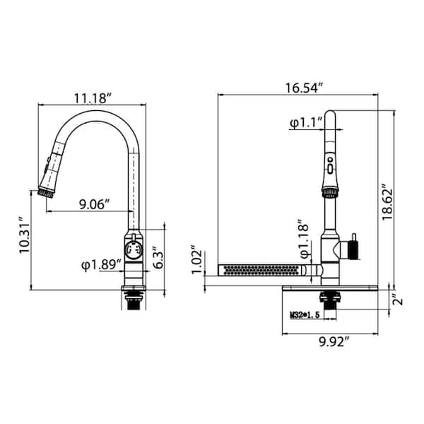 Single Handle 18.62 in. Pull Down Sprayer Kitchen Faucet with Pull Out Spray Wand, 180° Spout Swivel Taps in Gray