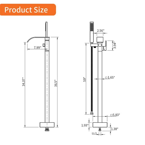 Single-Handle Freestanding Tub Faucet with Hand Shower Brass Floor Mount Bathtub Filler with Sprayer in Brushed Gold