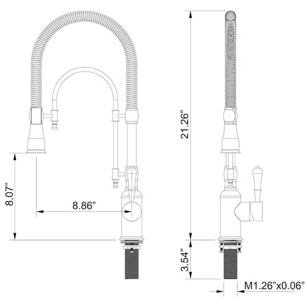 Single Handle Pull Down Sprayer Kitchen Sink Faucet with 360° Spout Swivel Brass Commercial 21.26 in Polished Gold