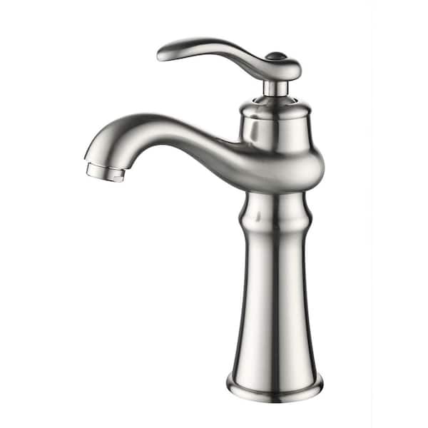 Single Handle Single Hole Bathroom Faucet Elegant Brass Sink Basin Vanity Taps in Brushed Nickel