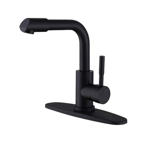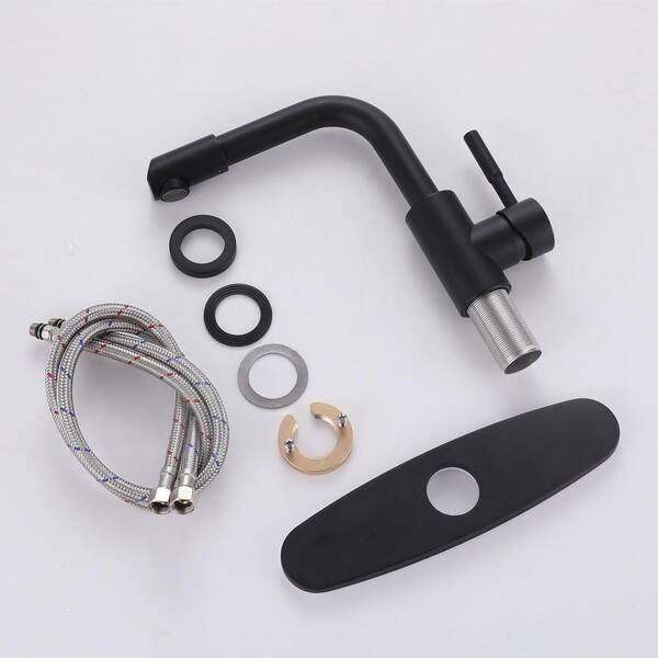 Single Handle Single Hole Bathroom Faucet with Deckplate Included Modern Stainless Steel Sink Basin Taps in Matte Black