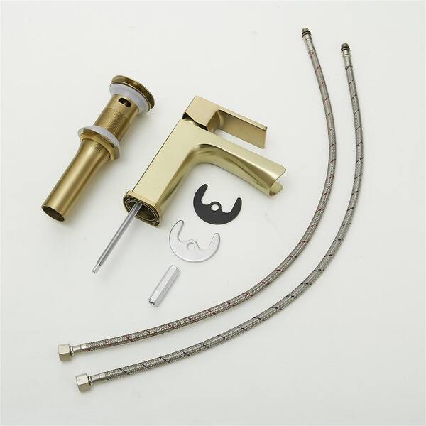 Single Handle Single Hole Bathroom Faucet with Pop-up Drain Kit Modern Brass Waterfall Sink Basin Taps in Brushed Gold