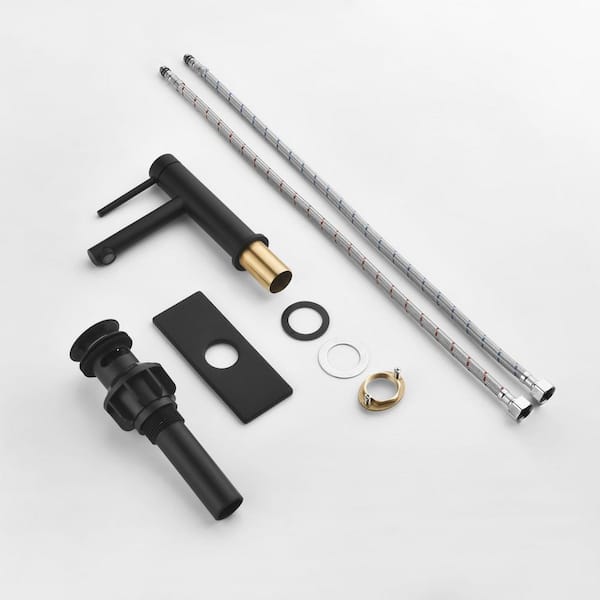 Single Handle Single Hole Bathroom Faucet with Pop-up Drain Kit and Deckplate Brass Modern Sink Basin Taps in MatteBlack