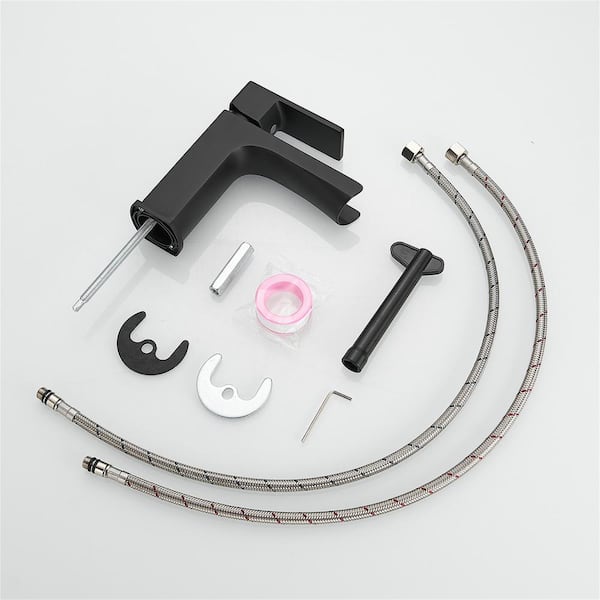 Single Handle Single Hole Bathroom Faucet with Pop-up Drain Modern Brass Waterfall Sink Vanity Faucets in Matte Black