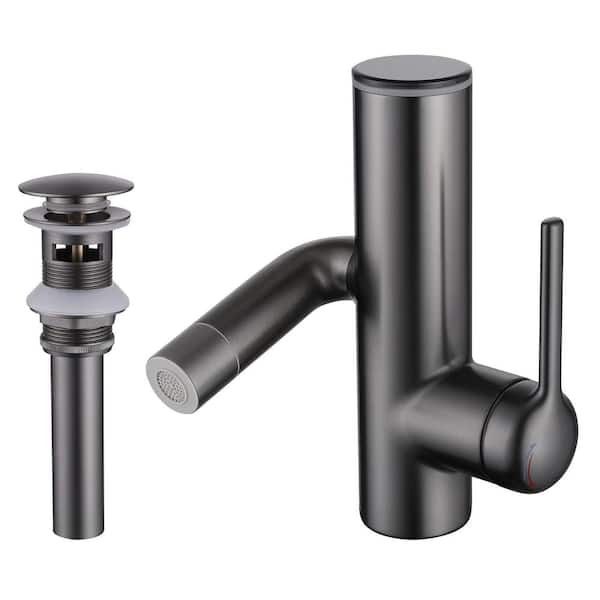 Single Handle Single Hole Temperature Display Bathroom Sink Faucet with Drain Kit Zinc Alloy Smart Basin Taps in Grey