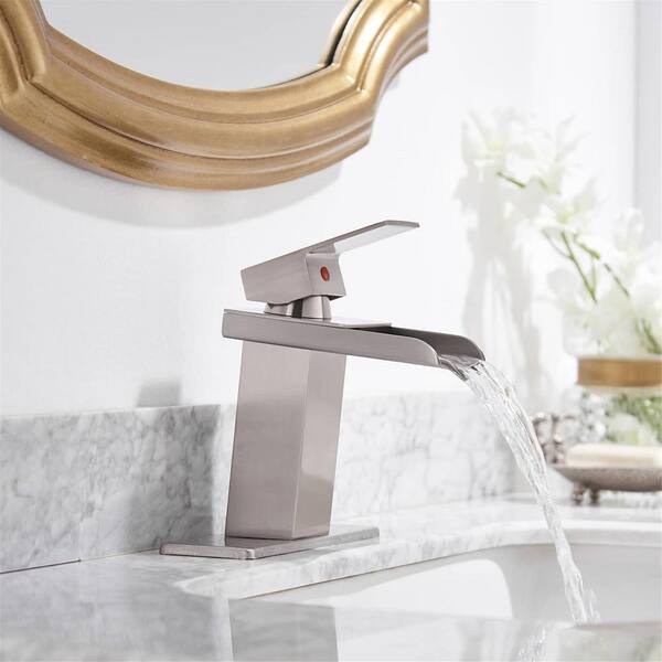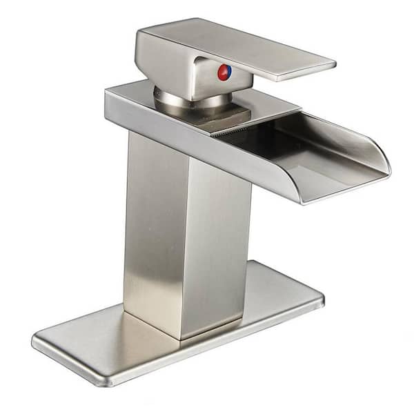 Single Handle Single Hole Waterfall Bathroom Faucet Brass Sink Basin Faucets with Deckplate Included in Brushed Nickel