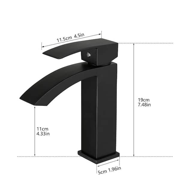 Single-Handle Single-Hole Waterfall Bathroom Faucet Deck Mounted Bathroom Sink Faucet in Matte Black