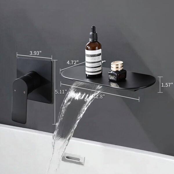 Single-Handle Wall-Mount Roman Tub Faucet with Valve Modern Brass Waterfall Bathtub Filler in Matte Black