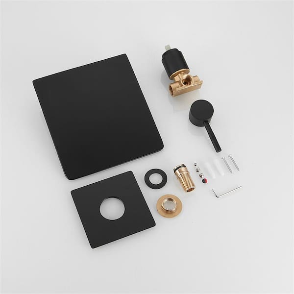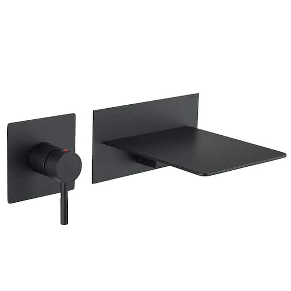 Single Handle Wall Mounted Bathroom Faucet with Valve Modern Brass Waterfall Bathroom Sink Basin Faucets in Matte Black