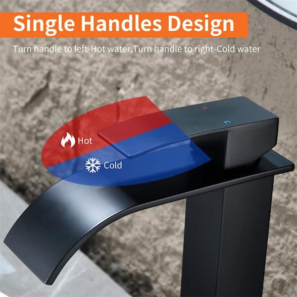 Single Handle Waterfall Vessel Sink Faucet with Drain Assembly Stainless Steel Bathroom High Tall Taps in Matte Black