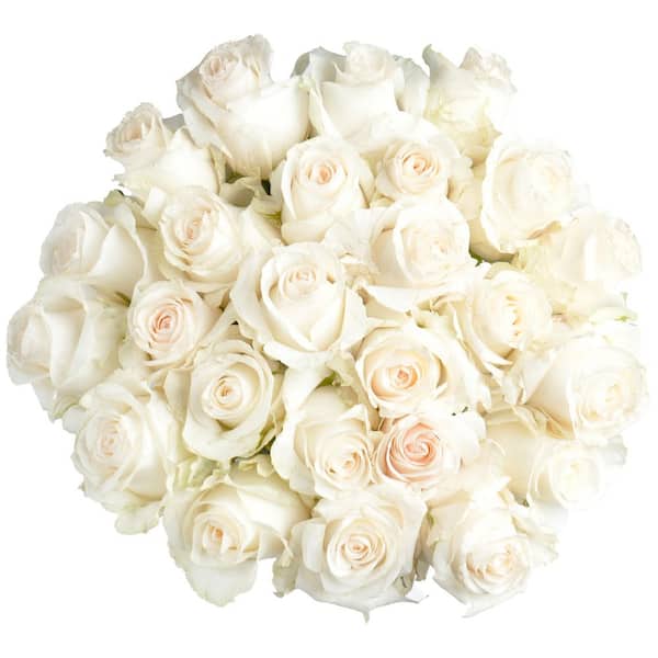 FLORAVAS 25-STEM WHITE ROSES WITH GLASS VASE-FRESH CUT ROSE ARRANGEMENT
