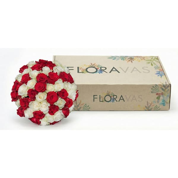 50-Stem Rainbow Roses-Red and White Mixed Rose Bouquet