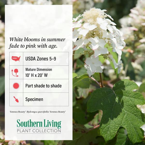 3 Gal. Semmes Beauty Oakleaf Hydrangea (Quercifolia) Live Deciduous Shrub, Conical White Blooms