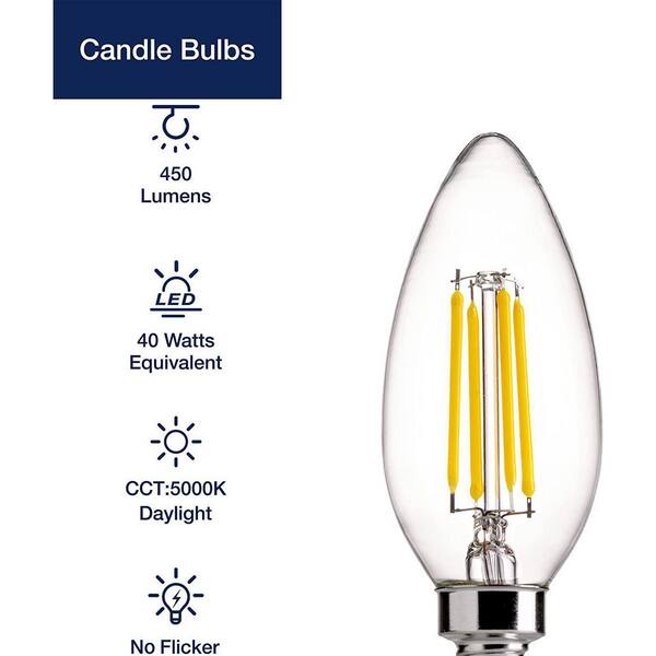 40-Watt Equivalent B10 Dimmable LED E12 Candelabra Bulbs, LED Chandelier Light Bulbs, 450LM, 5000K Daylight, 12 Pack