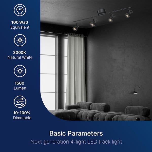 Black 24.1 in. 24W 4-Light LED Track Lighting Ceiling Fixture