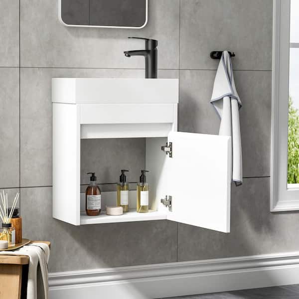 18.1 in. W x 10.2 in. D x 22.8 in. H Bath Vanity in White Straight Grain with White Resin Top