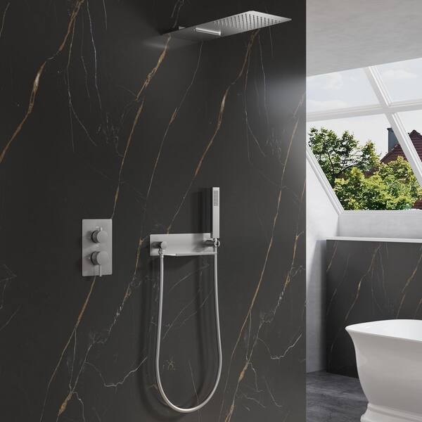 2-Spray Shower Faucet 2.5 GPM with Pressure Balance, Ultra-thin 3-Function Shower in Brushed Nickel