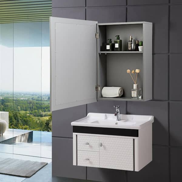 20 in. W x 26 in. H Rectangular Medicine Cabinet with Mirror in Gray
