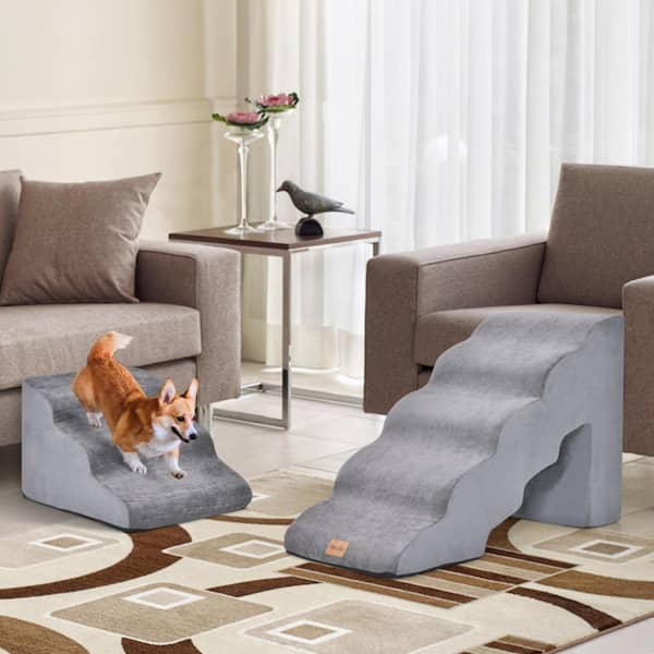 22 in. and 11 in. Foam Pet Stairs Set with 5-Tier and 3-Tier Dog Stairs in Gray