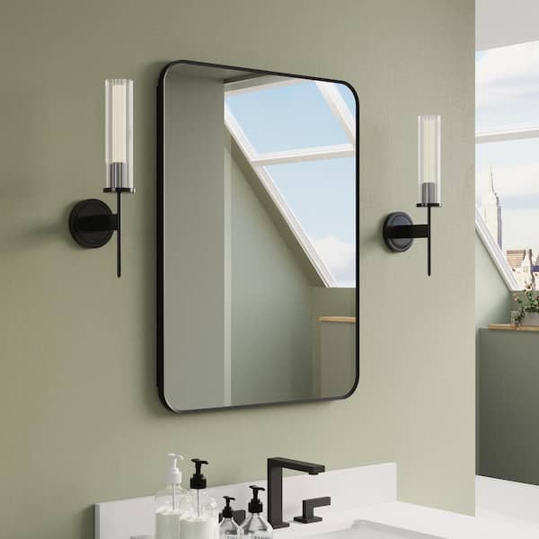23.5 in. W x 32 in. H Rectangular Adjust Shelves Recessed/Surface Mount Black Aluminum Medicine Cabinet with Mirror