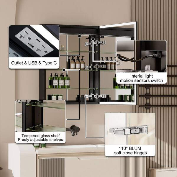 • Modern design, dimmable, defogging, built-in USB port and outlet