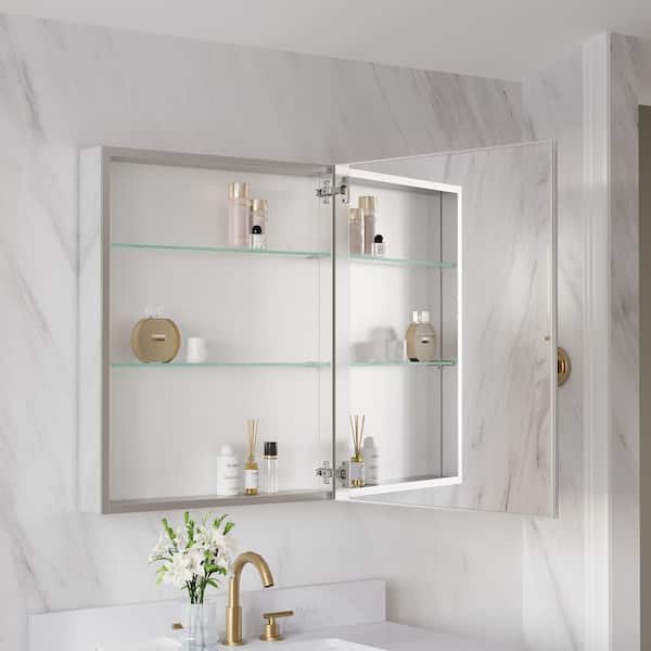 24 in. W x 30 in. H Rectangular Silver Aluminum Recessed Mount Medicine Cabinet with Mirror