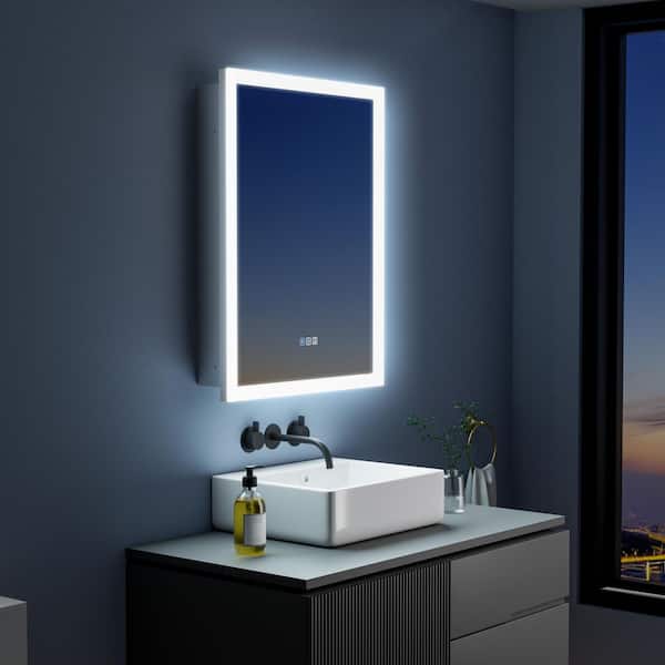 24 in. W x 32 in. H Rectangular Black LED Light Anti-Fog Aluminum Medicine Cabinet with Mirror (Left Open)