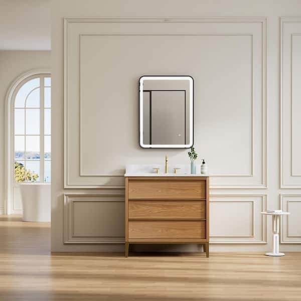 24 in. W x 32 in. H Rectangular R-Shaped Corners Aluminum Framed Dimmable LED Wall Bathroom Vanity Mirror in Black