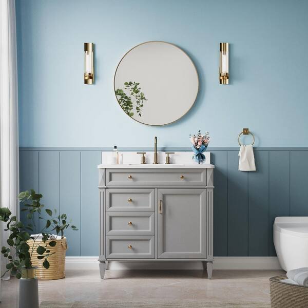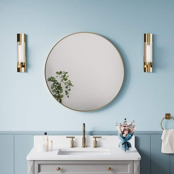 28 in. W x 28 in. H Round Aluminum Framed Wall Bathroom Vanity Mirror in Brushed Gold