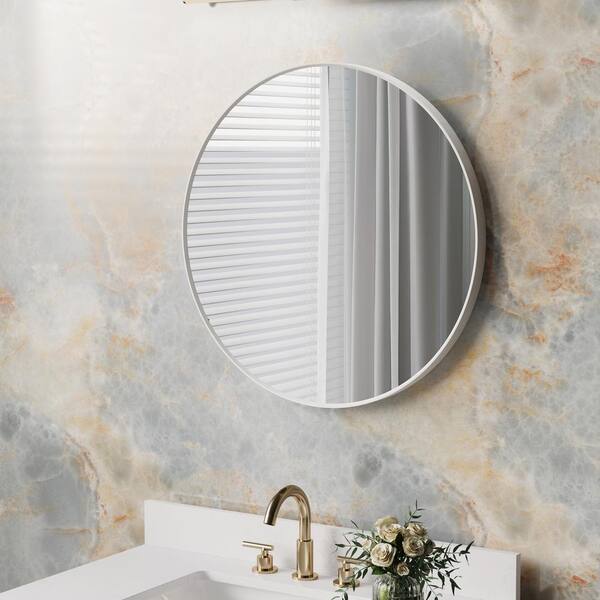 28 in. W x 28 in. H Round Aluminum Framed Wall Bathroom Vanity Mirror in White