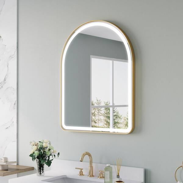 28 in. W x 36 in. H Arched Framed Anti-Fog Dimmable LED Wall Mount Bathroom Vanity Mirror in Brushed Gold