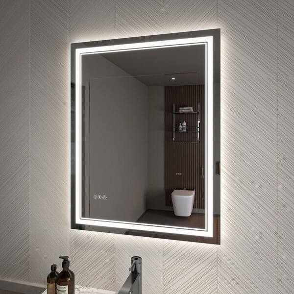 28 in. W x 36 in. H Rectangular Frameless Silver Dimmable Fog Free Wall Mount Bathroom Vanity Mirror