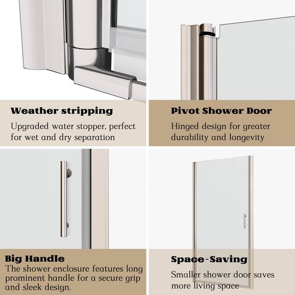 32-33 3/8 in. W x 72 in. H Pivot Frameless Swing Corner Shower Panel with Shower Door in Chrome with Clear Glass