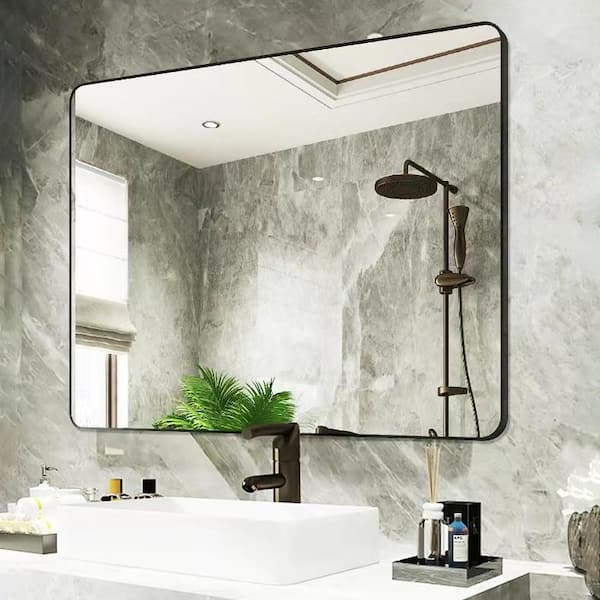 32 in. W x 24 in. H Rectangular Aluminium Steel Metal Framed Wall Mount Bathroom Vanity Mirror in Black