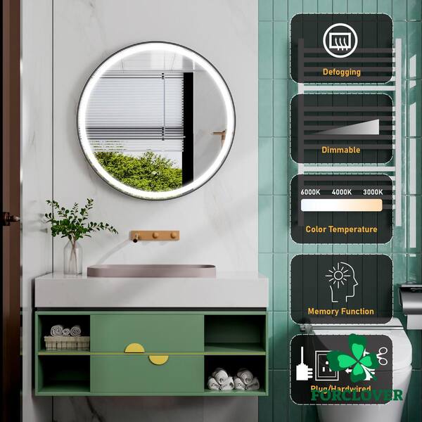 32 in. W x 32 in. H Round Aluminum Framed Dimmable LED Wall Bathroom Vanity Mirror in Matte Black