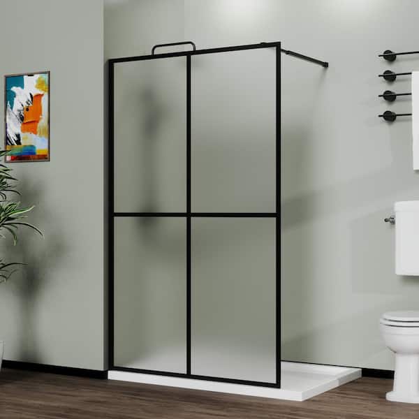 34 in. W x 72 in. H Fixed Frameless Single Panel Shower Door with Adjustable Support Bar,Shower Screen Walk-in Wet-room