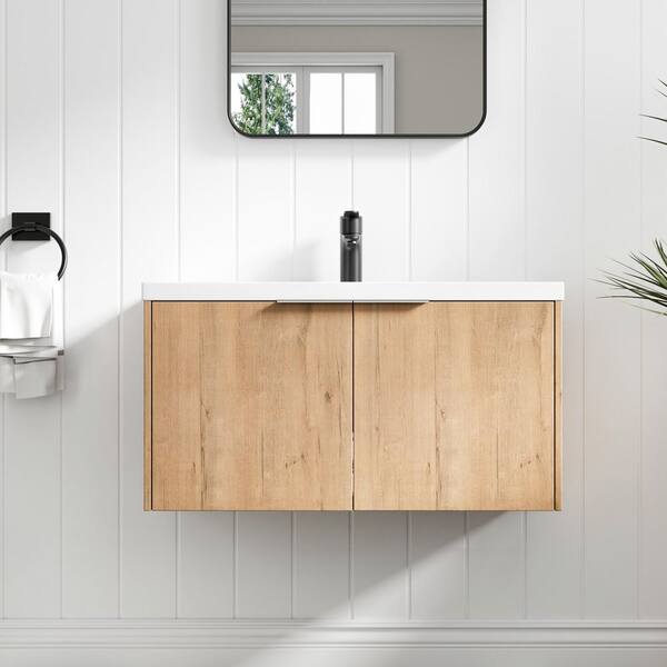 35-7/16 in. W x 18-1/8 in. D x 19-5/16 in. H Bath Vanity in Imitative Oak with White Resin Basin
