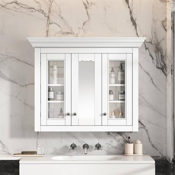 35 in. W x 28.01 in. H Rectangular Wood Medicine Cabinet with Mirror
