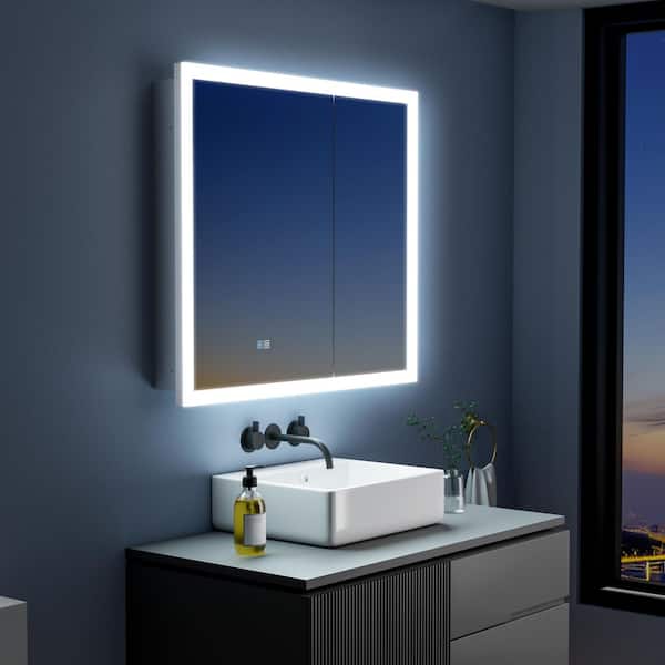 36.1 in. W x 32 in. H Rectangular Dimmable LED Light Anti-fog Aluminum Medicine Cabinet with Mirror