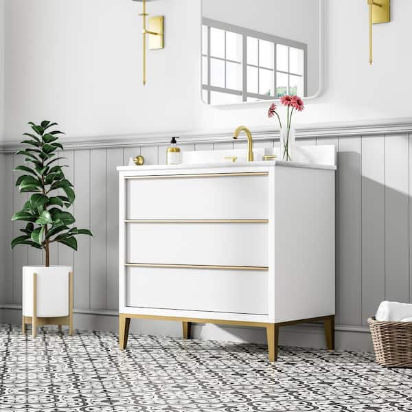 36 in. Freestanding Undermount Single Sink White Bath Vanity with White Quartz Top