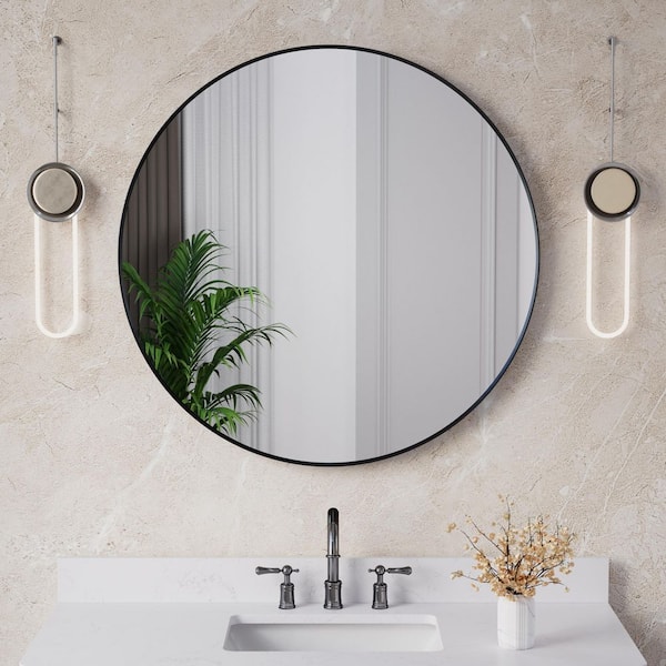 36 in. W x 36 in. H Round Aluminum Framed Wall Bathroom Vanity Mirror in Black