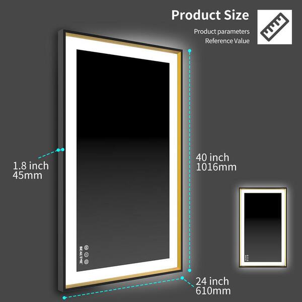 40 in. W x 24 in. H Rectangular Aluminum Framed Anti-Fog Dimmable Wall Mounted Bathroom Vanity Mirror in Black and Gold