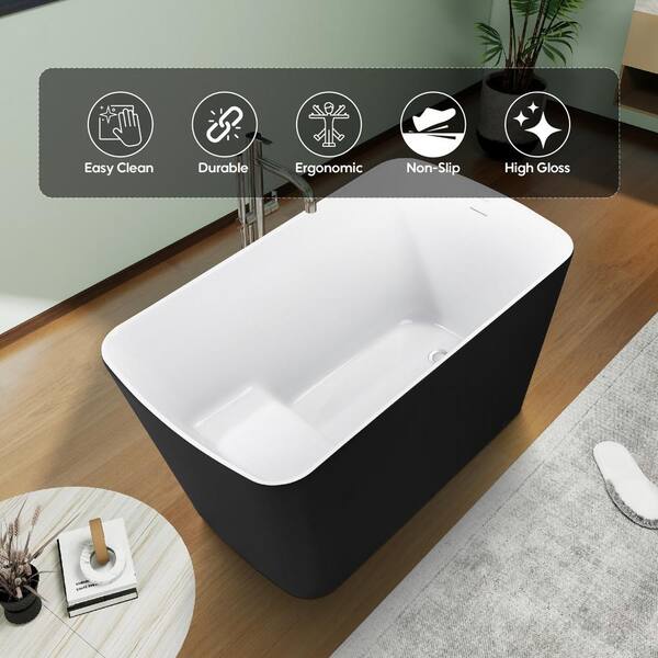 47 in. x 27 in. Acrylic Freestanding Flat Bottom Soaking Bathtub with Seat and Pop-Up Drain in Black