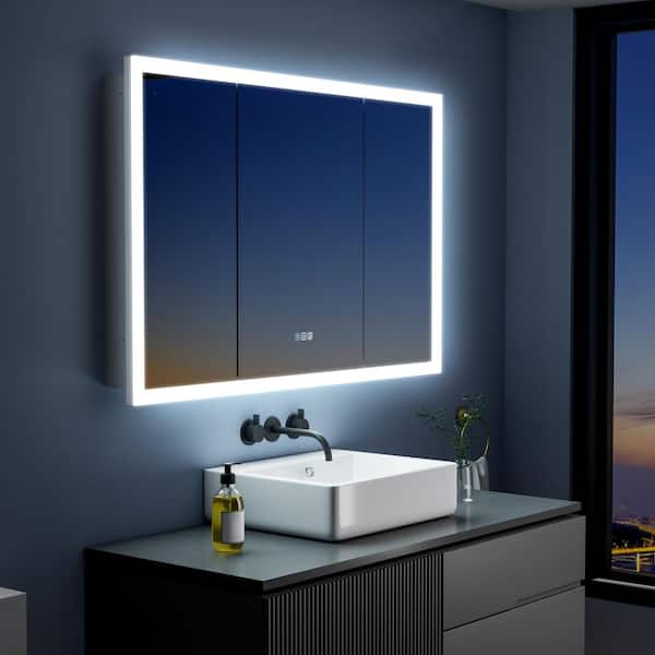 48 in. W x 32 in. H Rectangular Black LED Light Anti-fog Aluminum Medicine Cabinet with Mirror