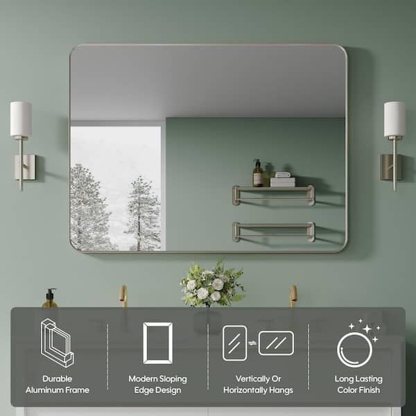 48 in. W x 36 in. H Rectangular Framed Wall Bathroom Vanity Mirror in Brushed Nickel