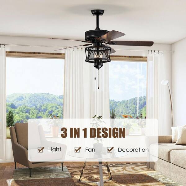 50 in. Indoor Brown Ceiling Fan with Lights Reversible Blades and Pull Chain Control