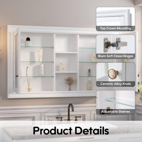 55 in. W x 32 in. H Rectangular Recessed Solid Wood Medicine Cabinet with Mirror