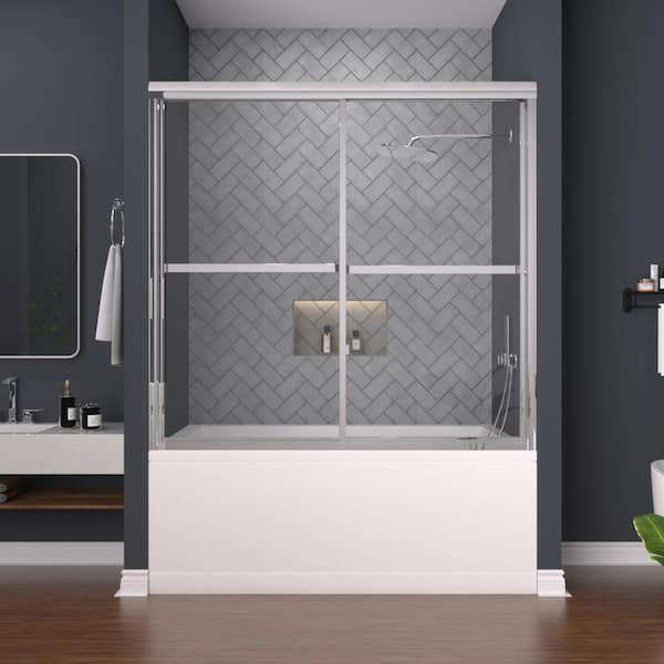 59 in. W x 56 in. H Sliding Framed Tub Door in Chrome with 1/8 in. Clear Tempered Glass